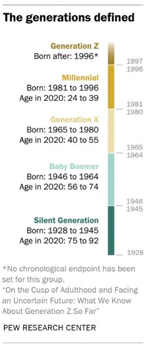 Z时代划分,图源:皮尤研究中心